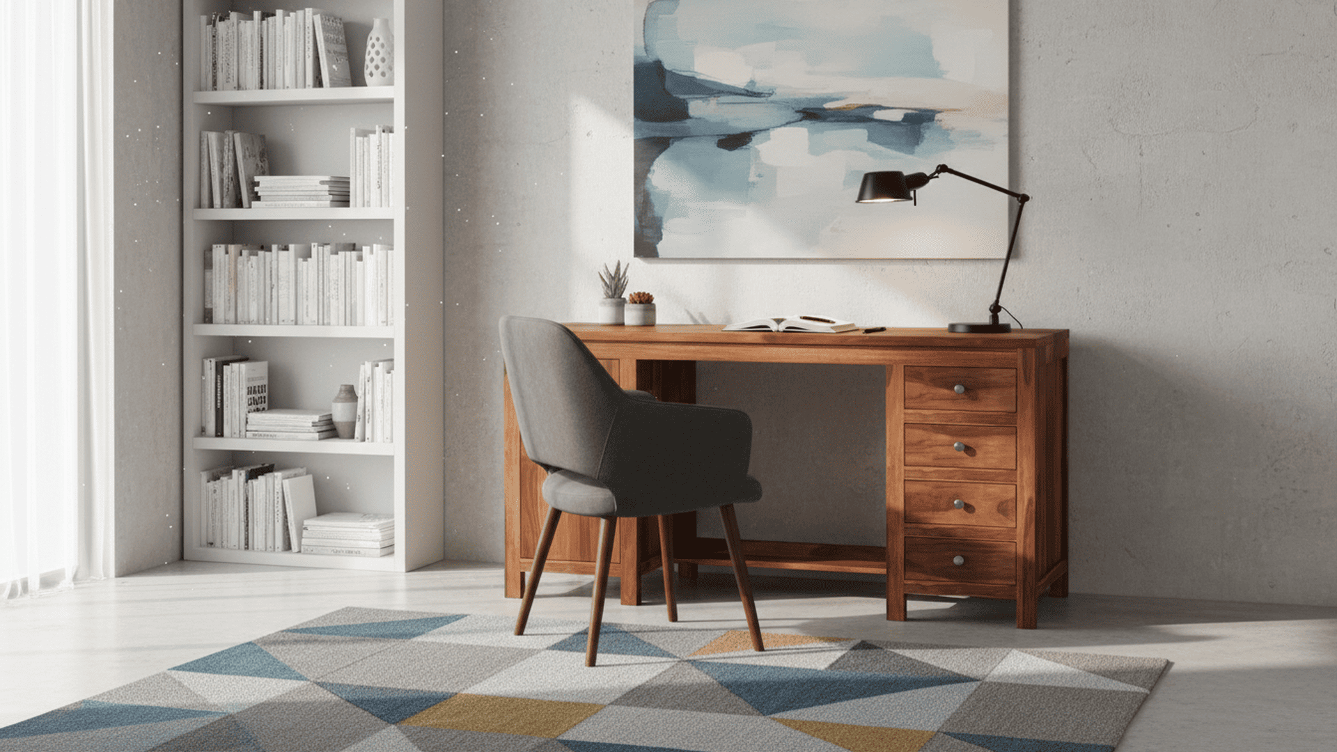 The table looks modern and fits well in any room like a bedroom, study room, or office.