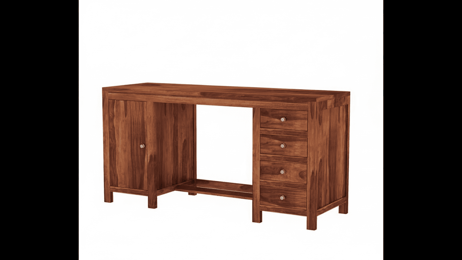 Brason Sheesham Wood Study Table with Four Drawers & Cabinet (Honey Finish)